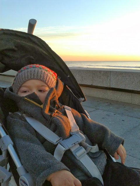 Acordamos lentamente e sem pressas. Começar o dia assim devagar é meio caminho andando para um dia relaxado. Lá fora sente-se bem o frio, mas não foi isso que nos impediu de sair de casa. Os passeios junto ao mar dão-me sempre outro alento. E então se formos os três apreciar as ondas e sentir o sol a desaparecer, perfeito.